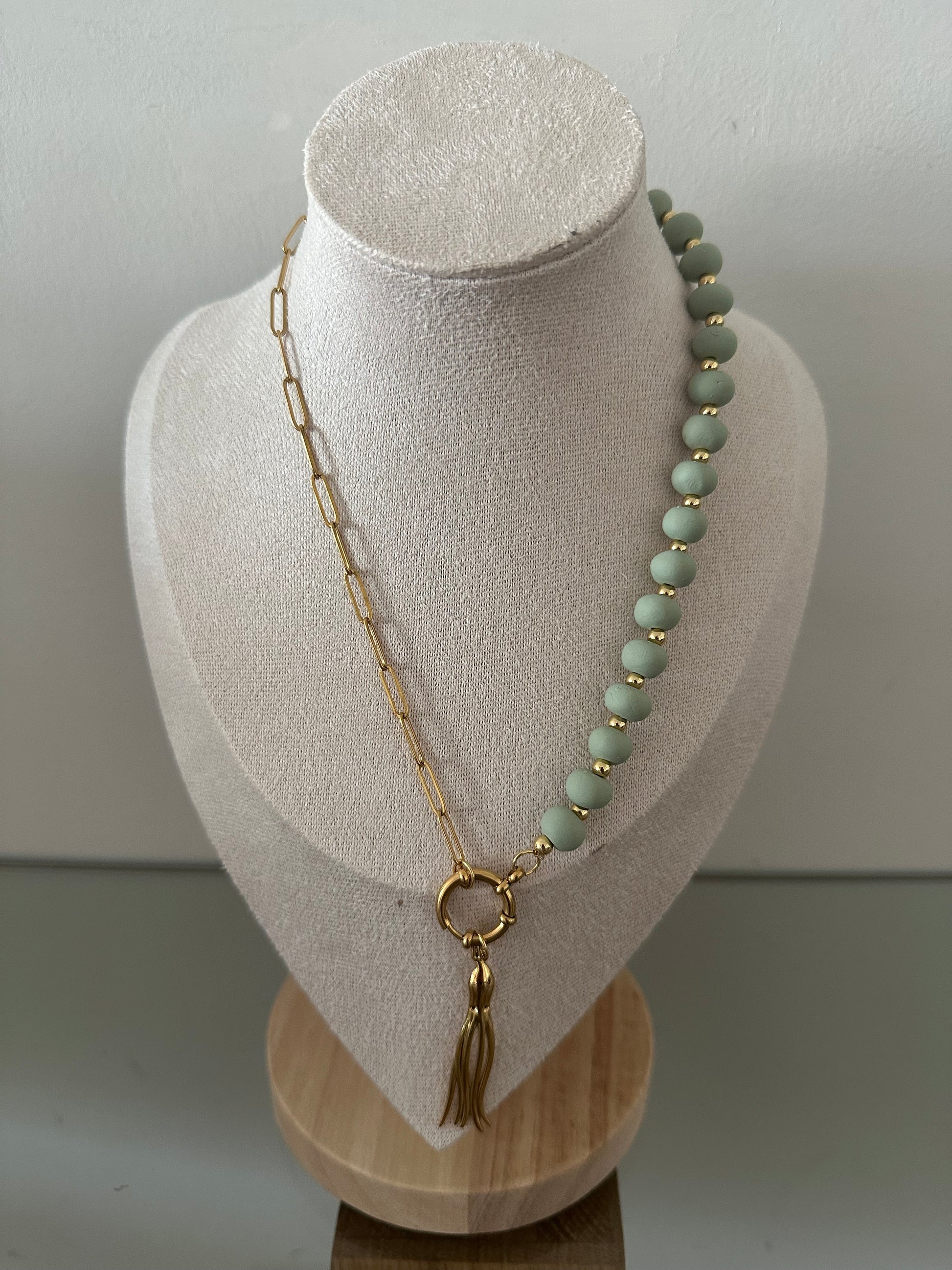 Collares hechos a mano con arcilla polimérica y acero inoxidable chapado en oro