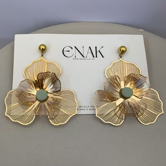 Pendientes hechos a mano con arcilla polimérica y acero inoxidable chapado en oro de grado quirúrgico hipoalergénico para orejas sensibles.