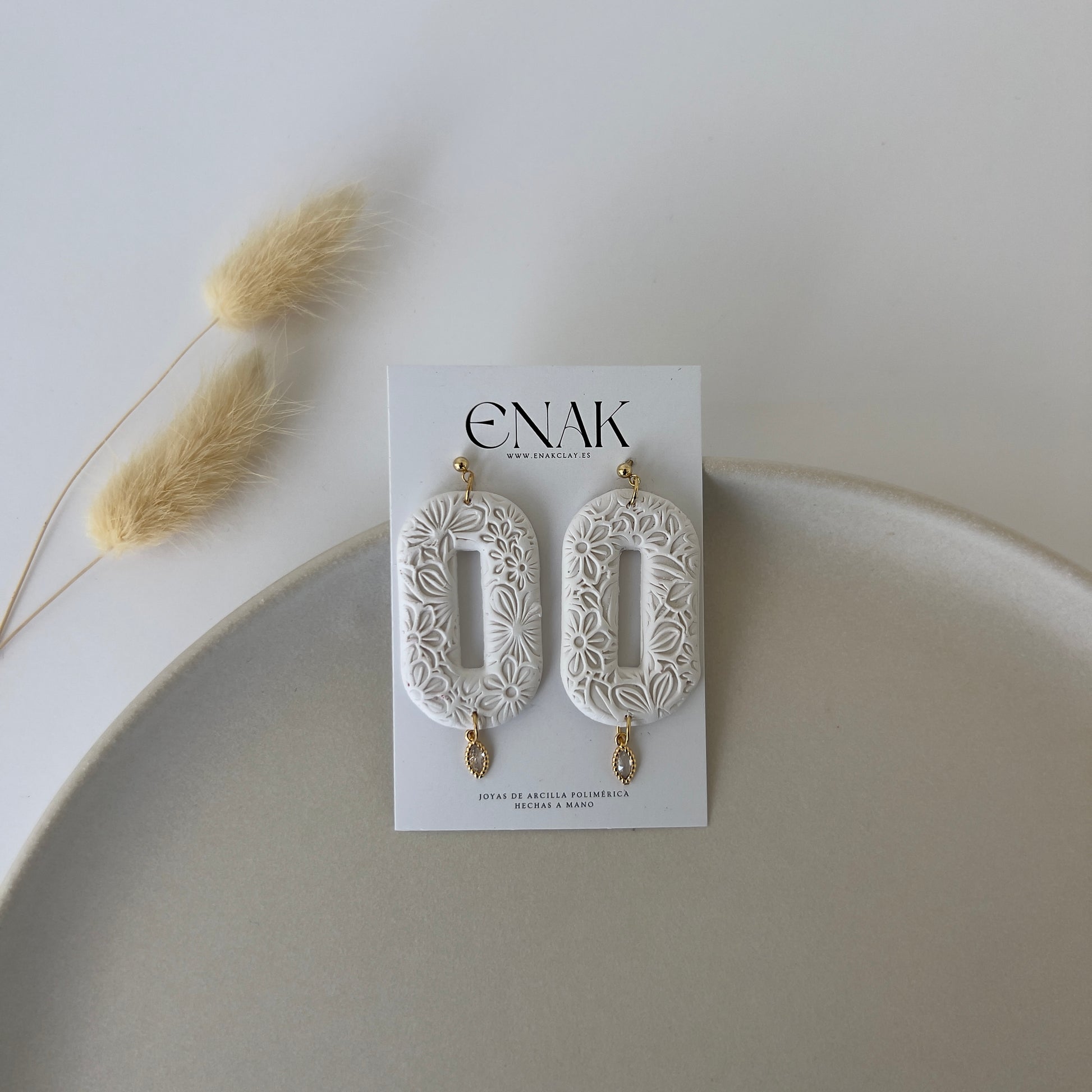 Pendientes hechos a mano con arcilla polimérica y acero inoxidable chapado en oro de grado quirúrgico hipoalergénico para orejas sensibles.